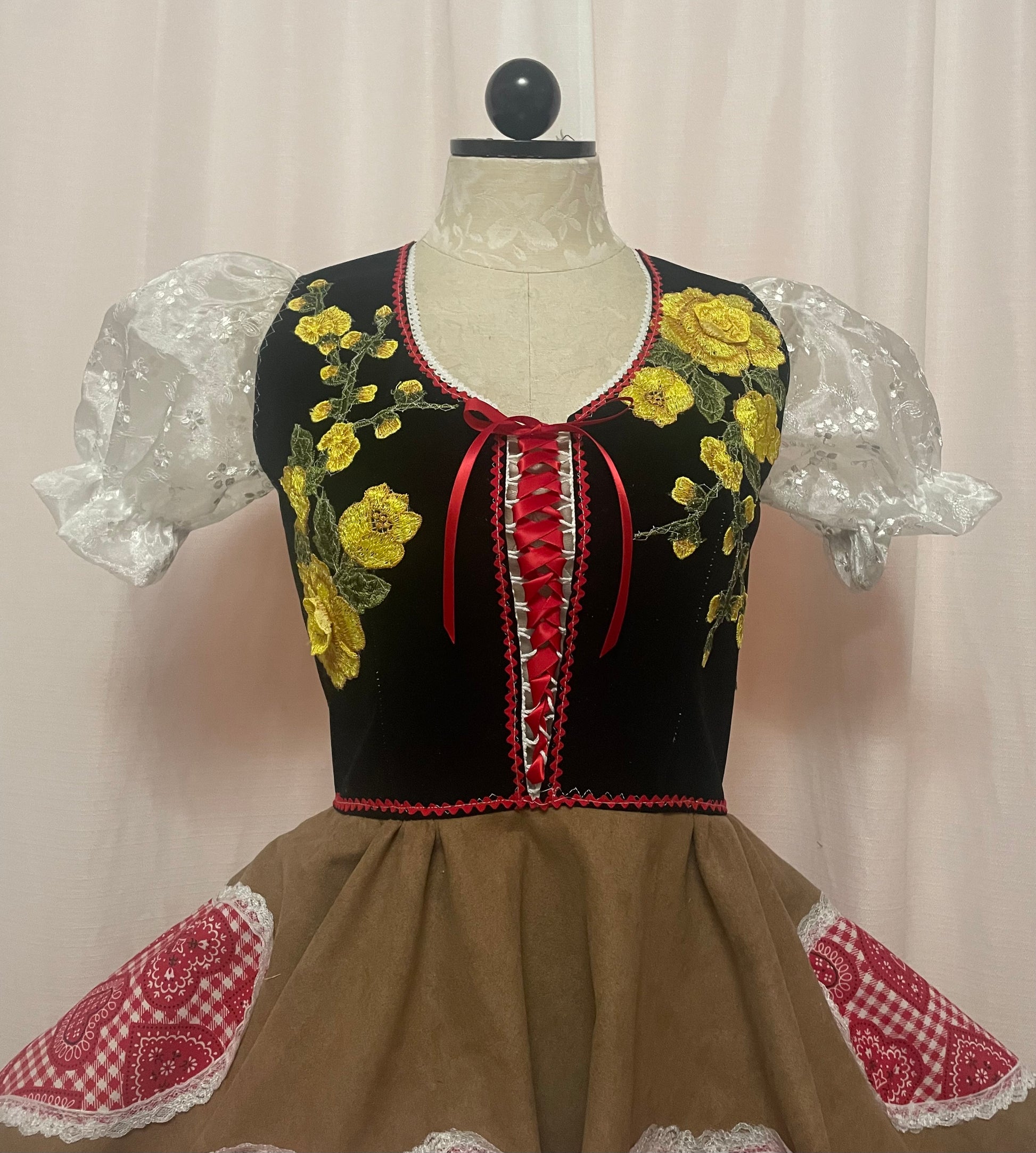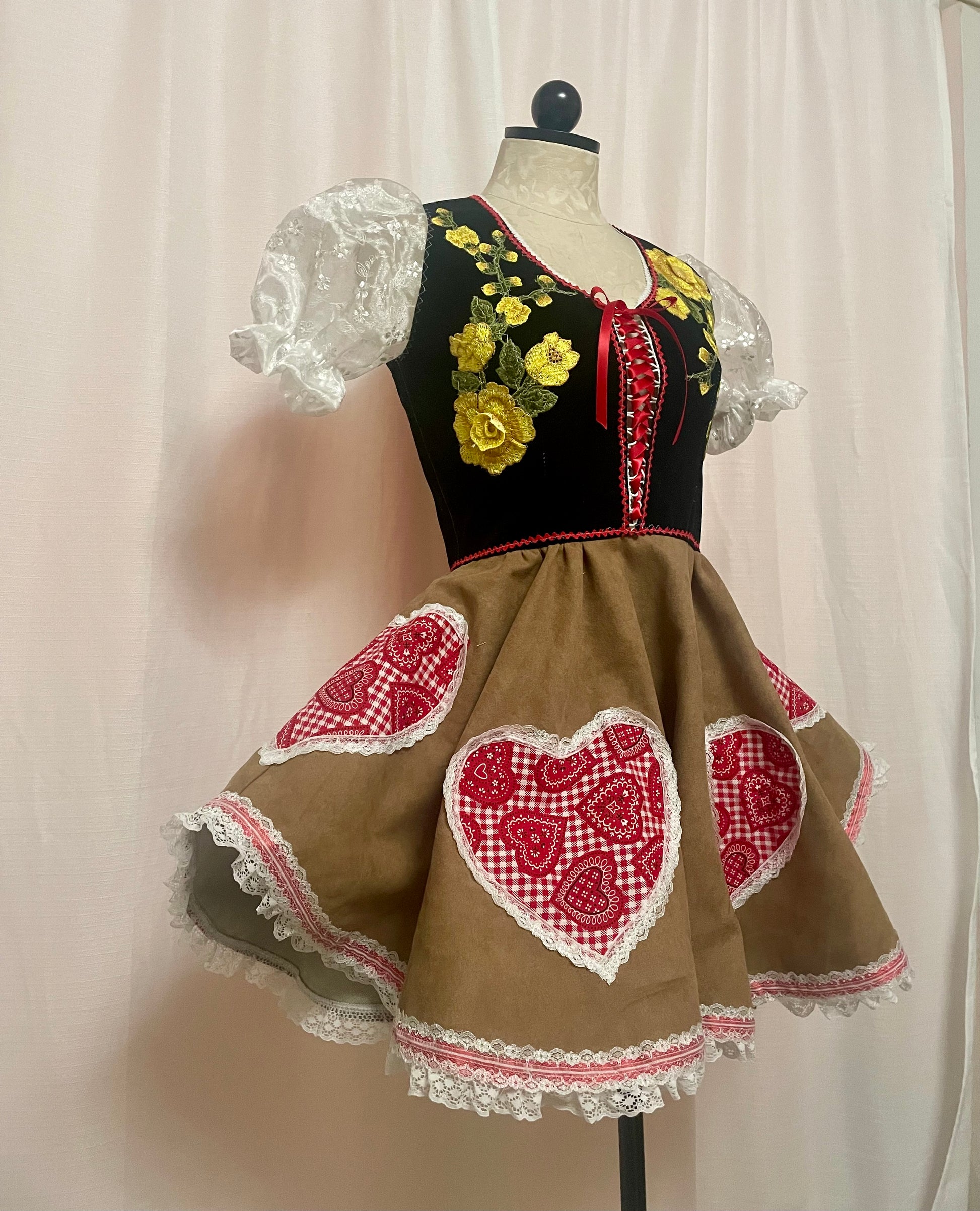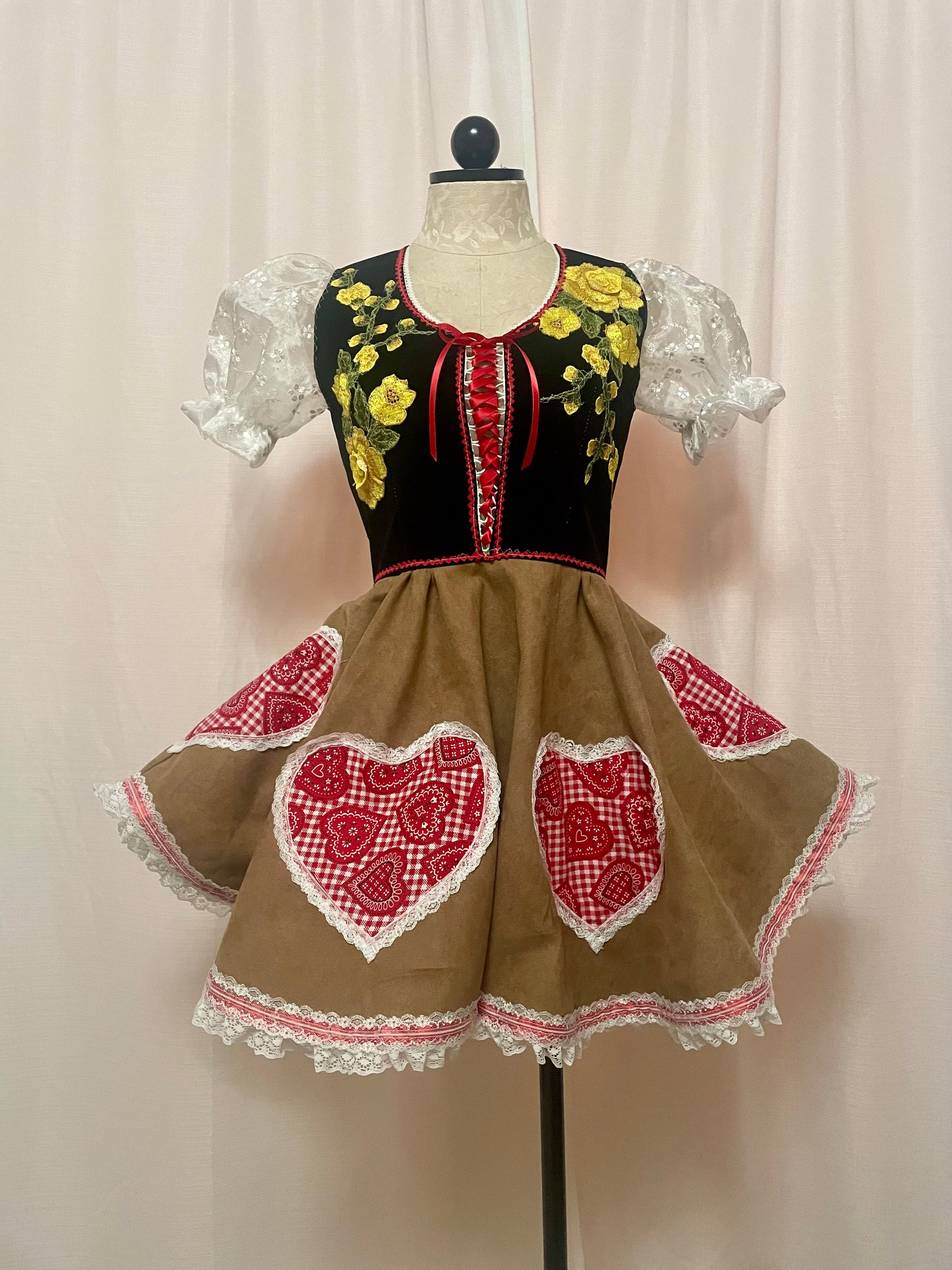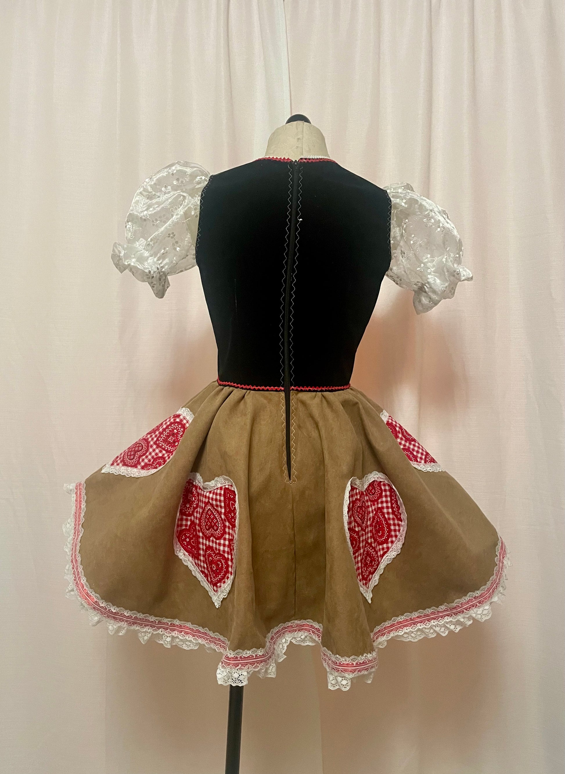 Introducing "The Sophia Dress" – a blend of charm and sweetness that will whisk you away to the enchanting realms of autumn. Handcrafted with love, this exquisite dress is a made of velvet, faux suede, delicate lace, and beautiful appliqué details. Drawing inspiration from the timeless German Dirndl Dresses, she captures the essence of tradition. As the seasons shift, The Sophia Dress becomes your perfect look to embrace the magic of fall.