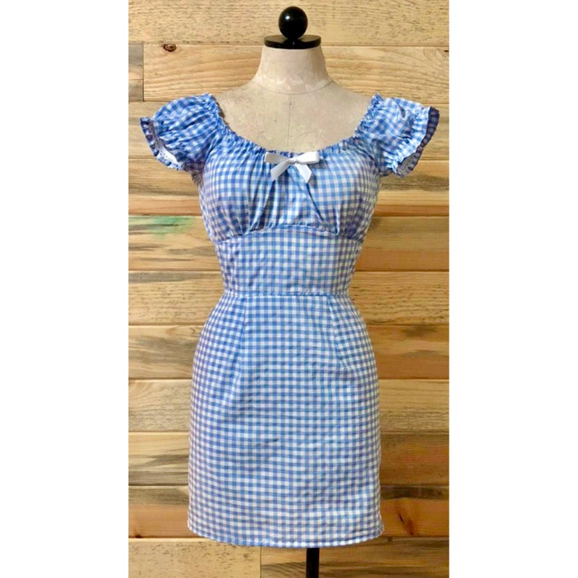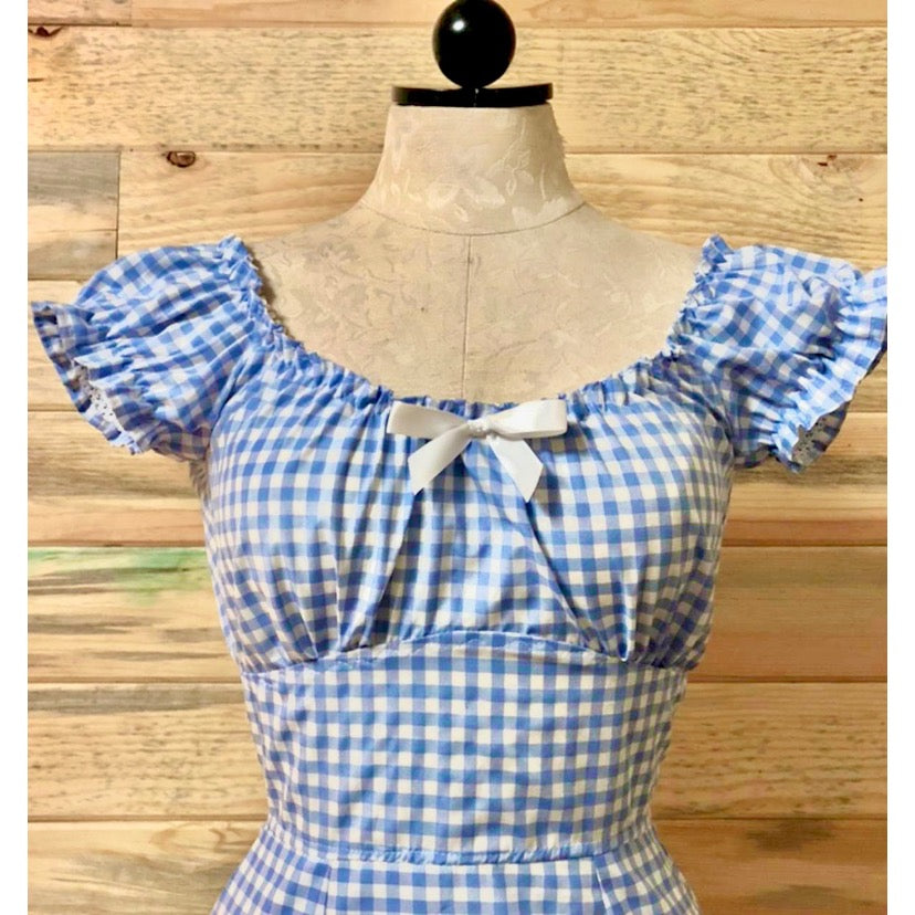 Introducing the irresistible "Alex Dress" – a charming peasant-style delight made with soft cotton gingham. With her gathered top and sleeves, this blue and white beauty exudes an undeniably flirty and fun vibe. She features a small rose detail, adding a touch of playful elegance. Complete with a zipper back closure, she is practical and cute. Get ready to turn heads and embrace your playful side with Alex.