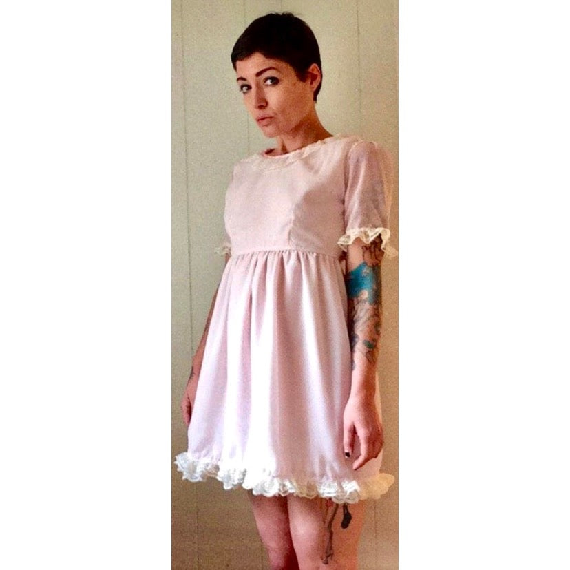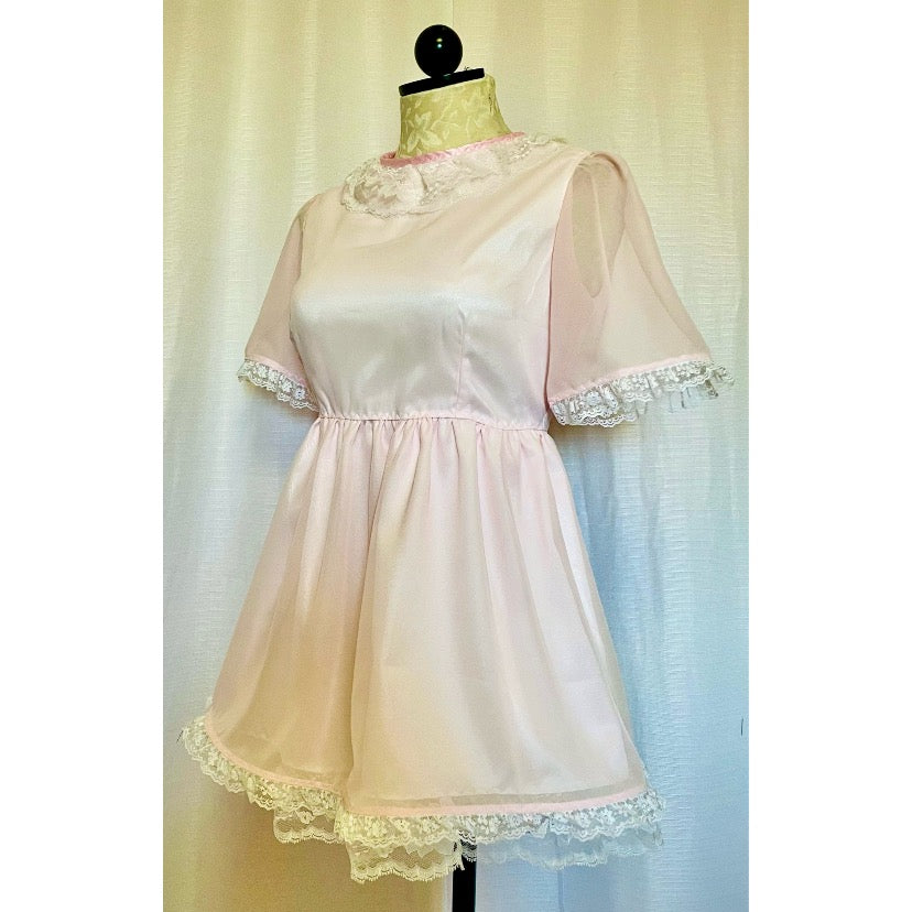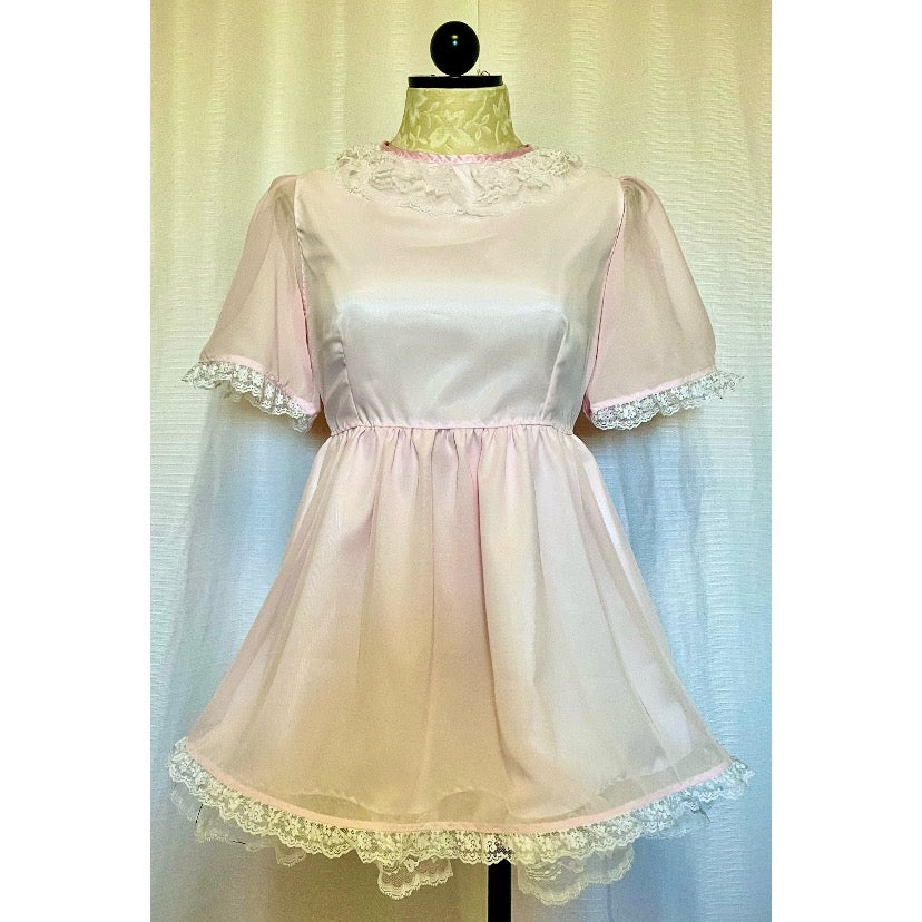 Indulge in beauty and playfulness with our delightful Antoinette Babydoll. Antoinette is made from smooth satin and adorned with layers of delicate pink chiffon, creating an opulent look. The exquisite French lace detailing adds a touch of playfulness. She is a charming mini dress, perfect for exciting adventures and romantic escapades. Join her on a sweet journey and let her remind you that life is meant to be savored, just like cake.