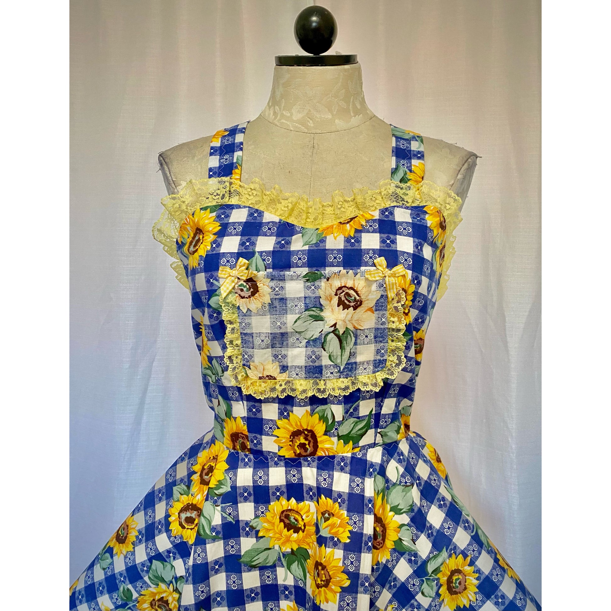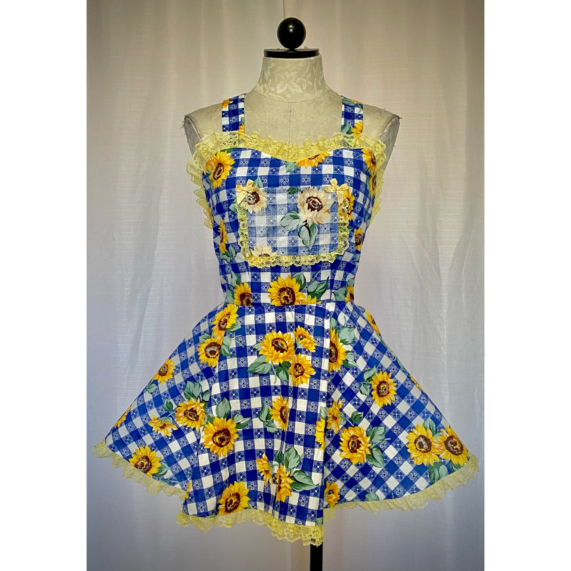 The Apron Dress in Blue Sunflower