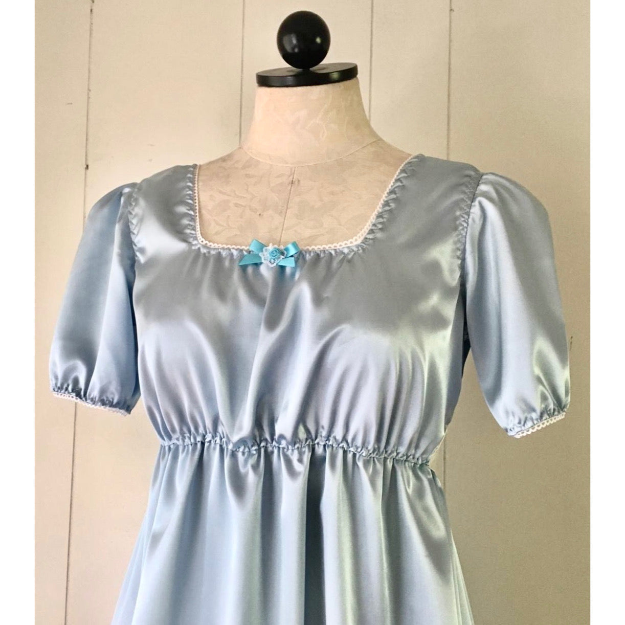 Soft satin babydoll dress with gathered bust and satin waist tie