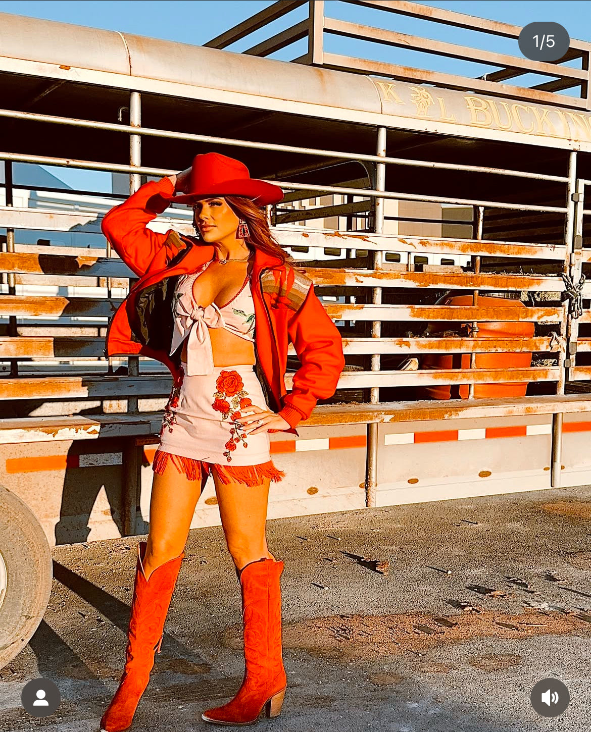 Vintage western inspired crop top and mini skirt with Fringe and rose appliqués