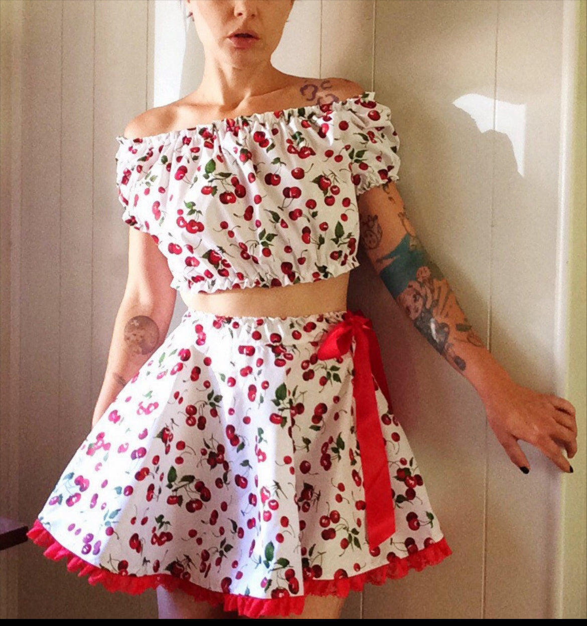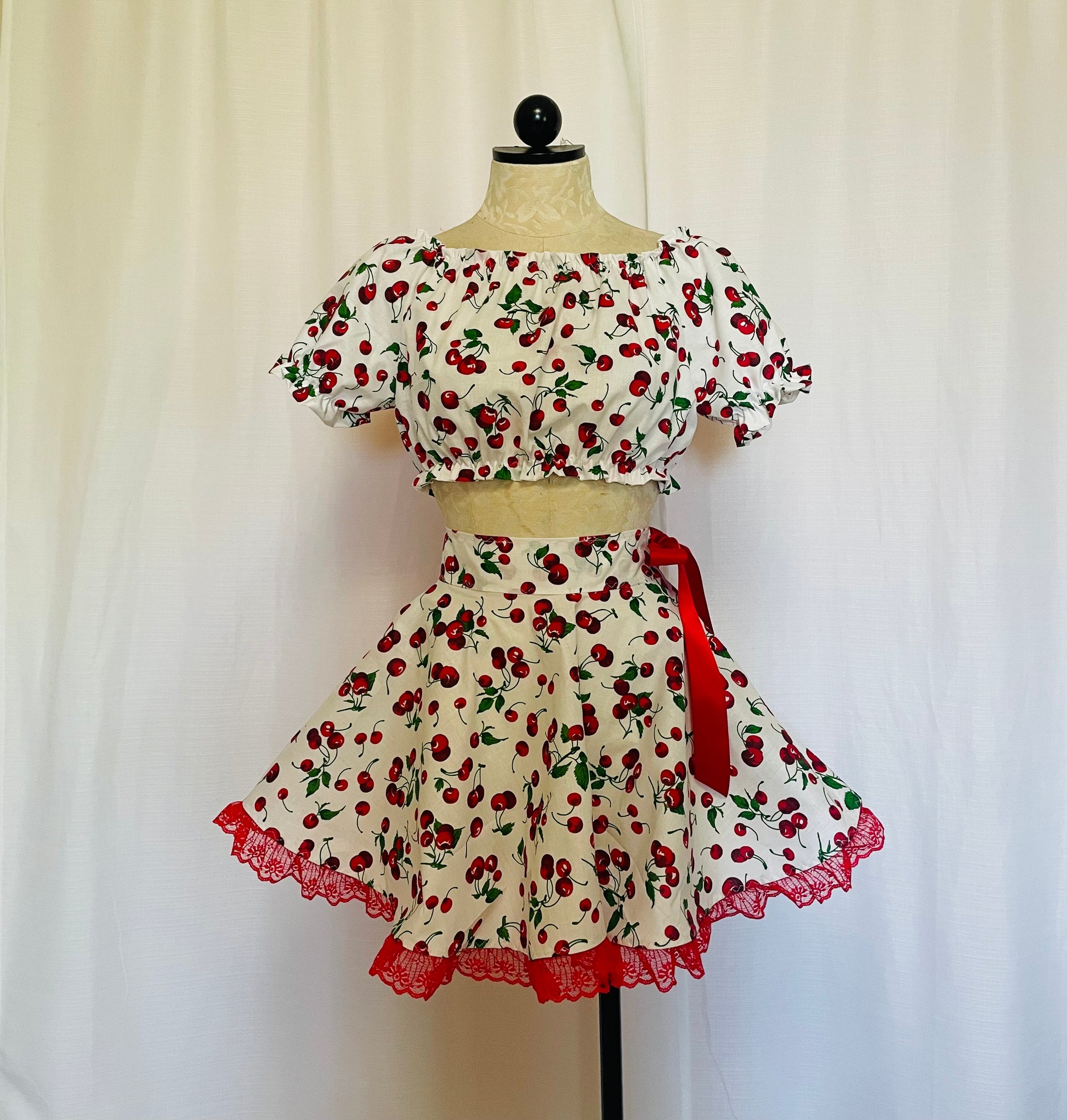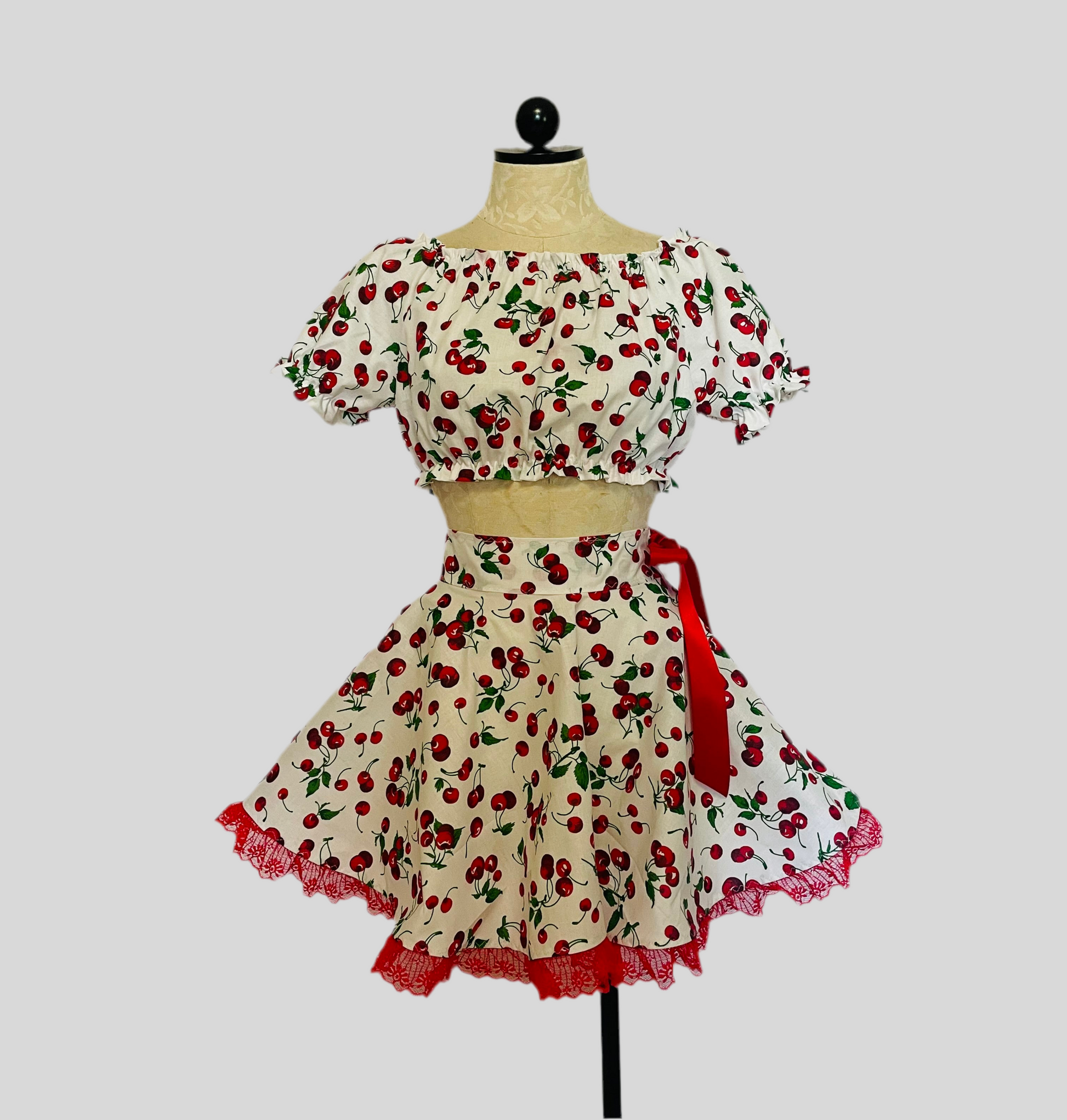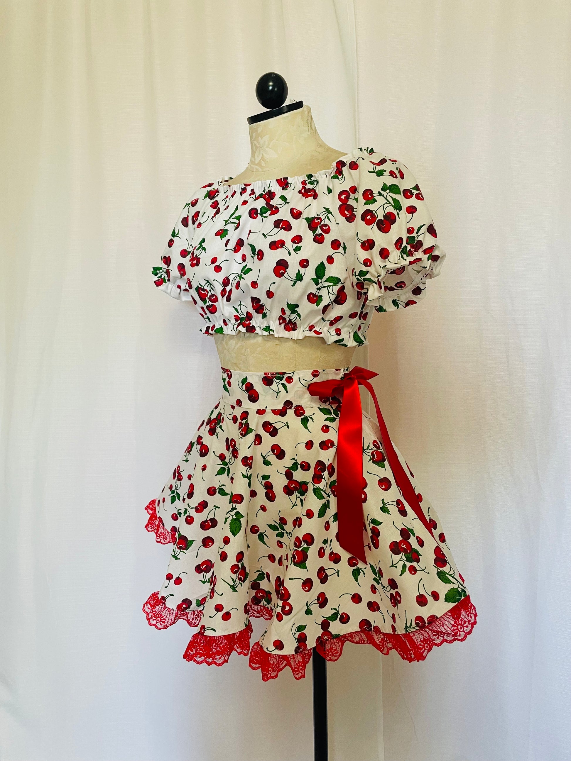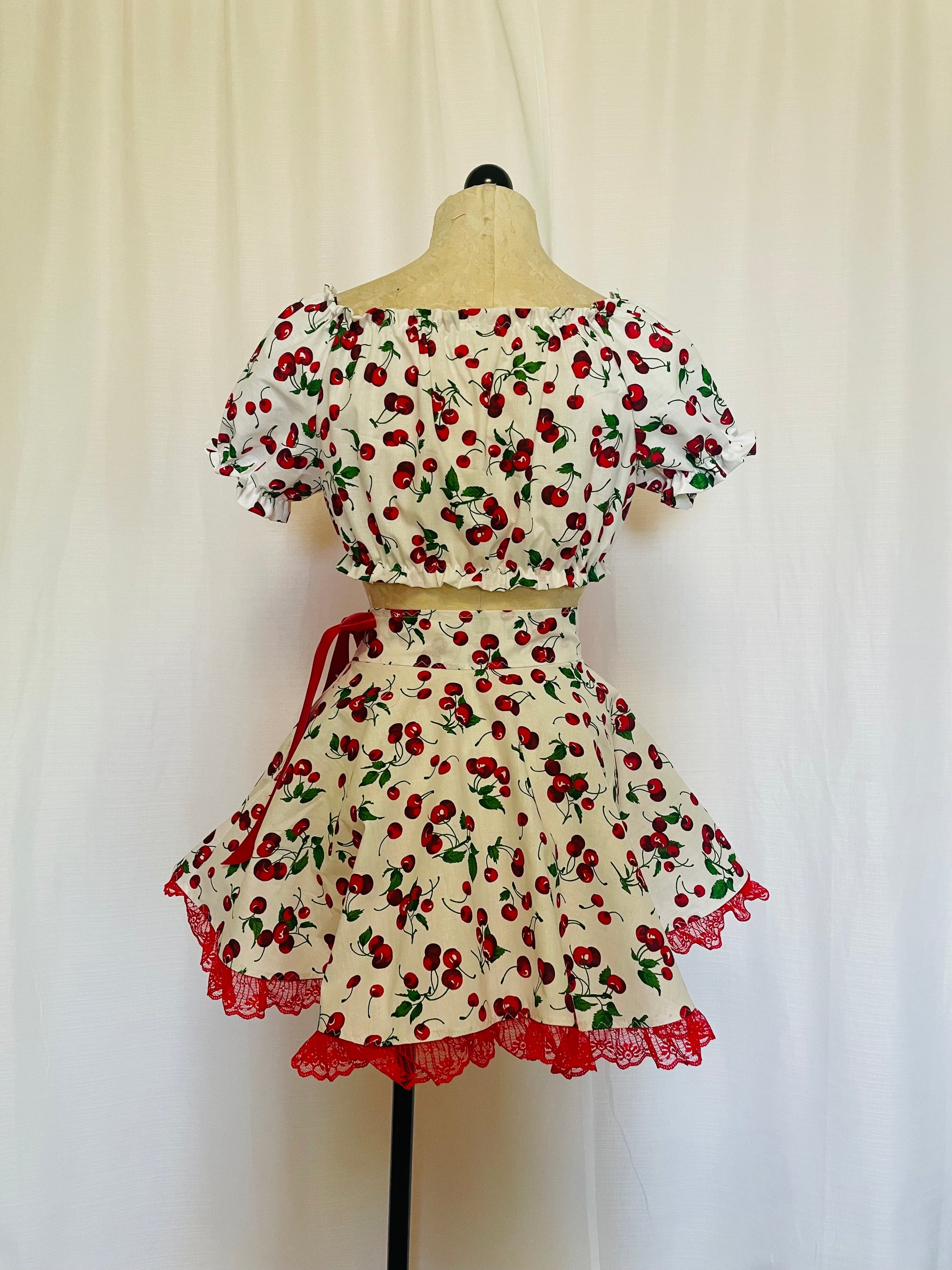 Vintage inspired cotton crop top with matching circle skirt.