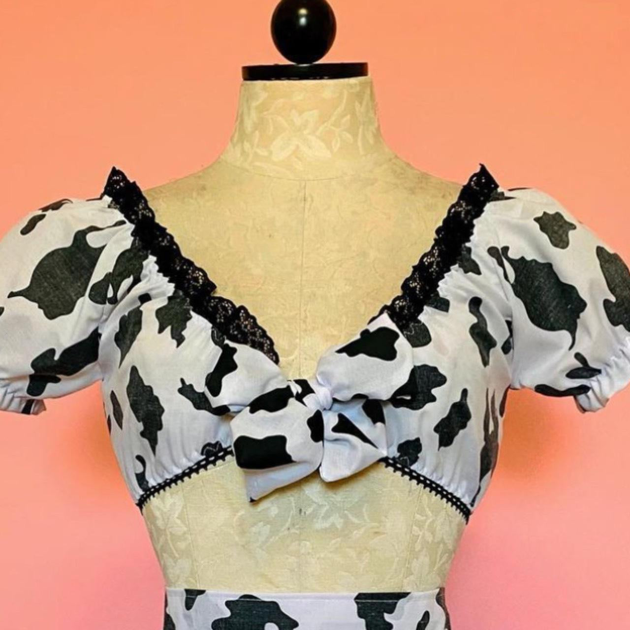 Cotton front tie crop top with matching full circle mini skirt and ruffled lace detailing