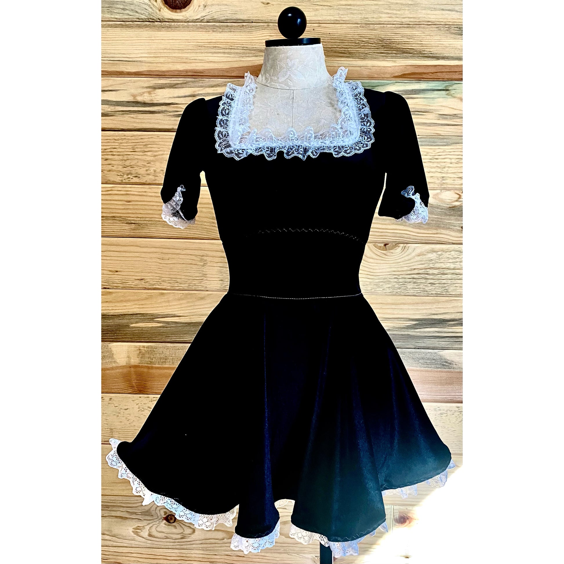 Vintage inspired velvet open back Dress with ruffled lace trim
