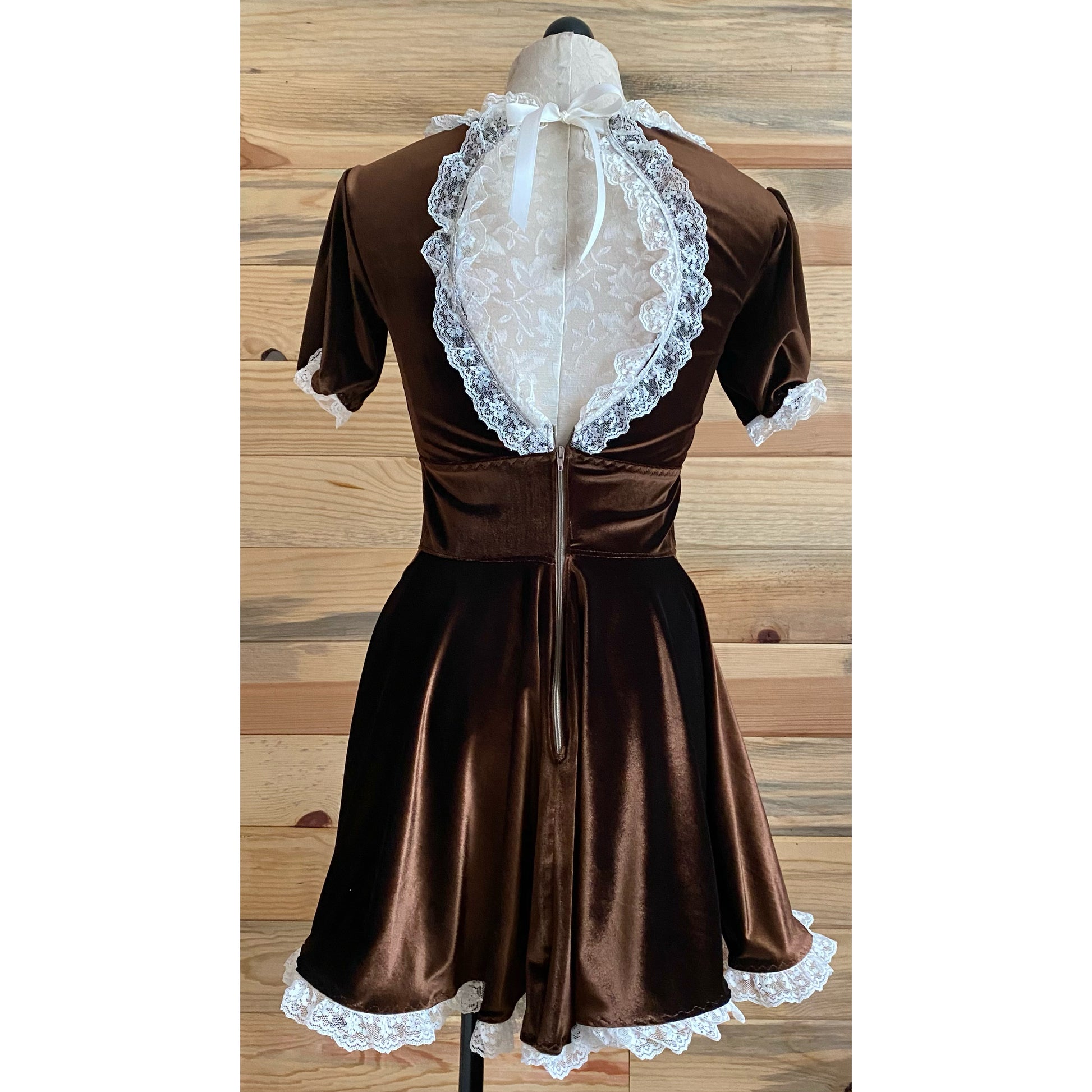 Vintage inspired velvet open back Dress with ruffled lace trim
