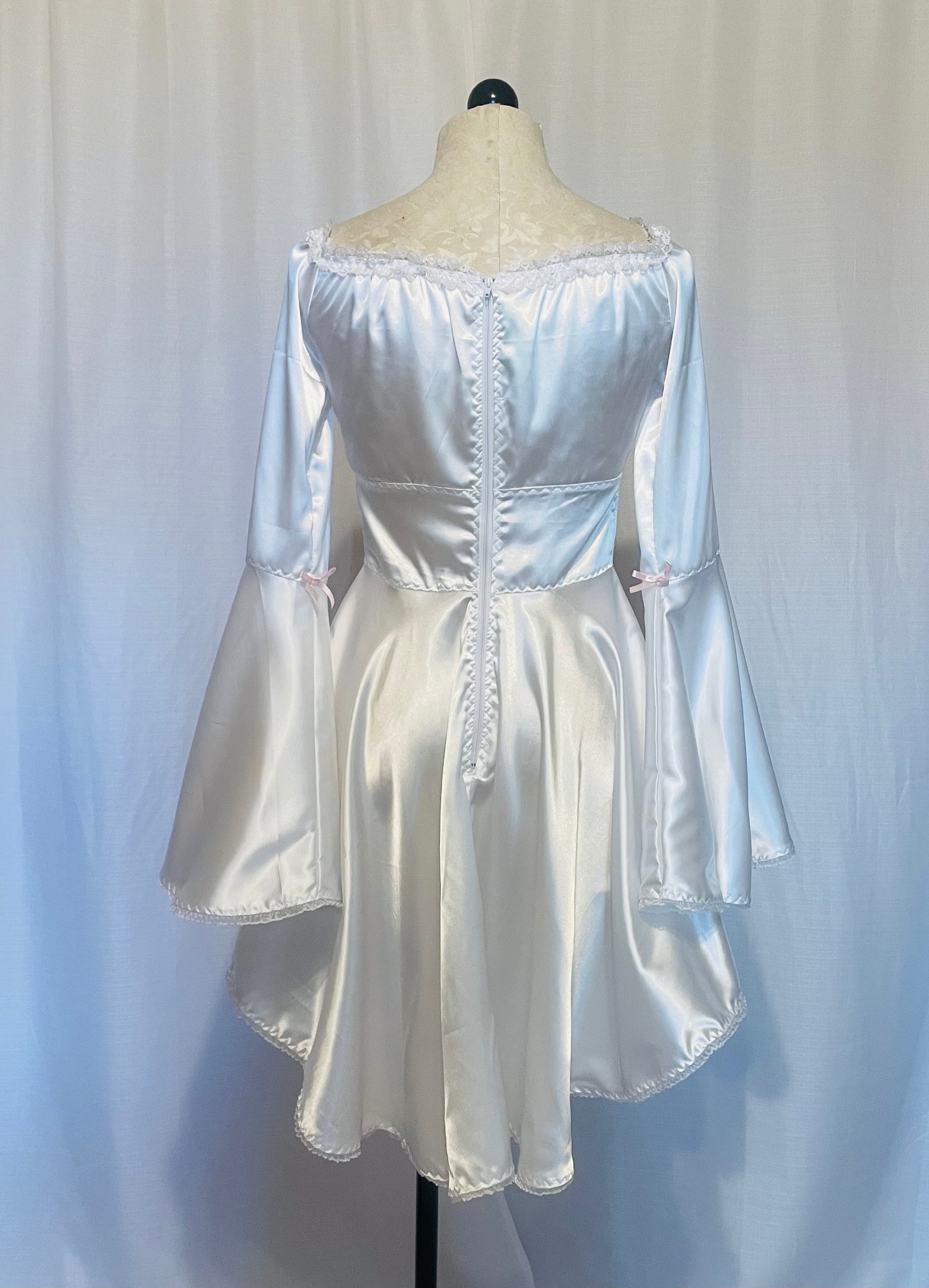 Unique stretch satin 70’s style dress with gorgeous bell sleeves.