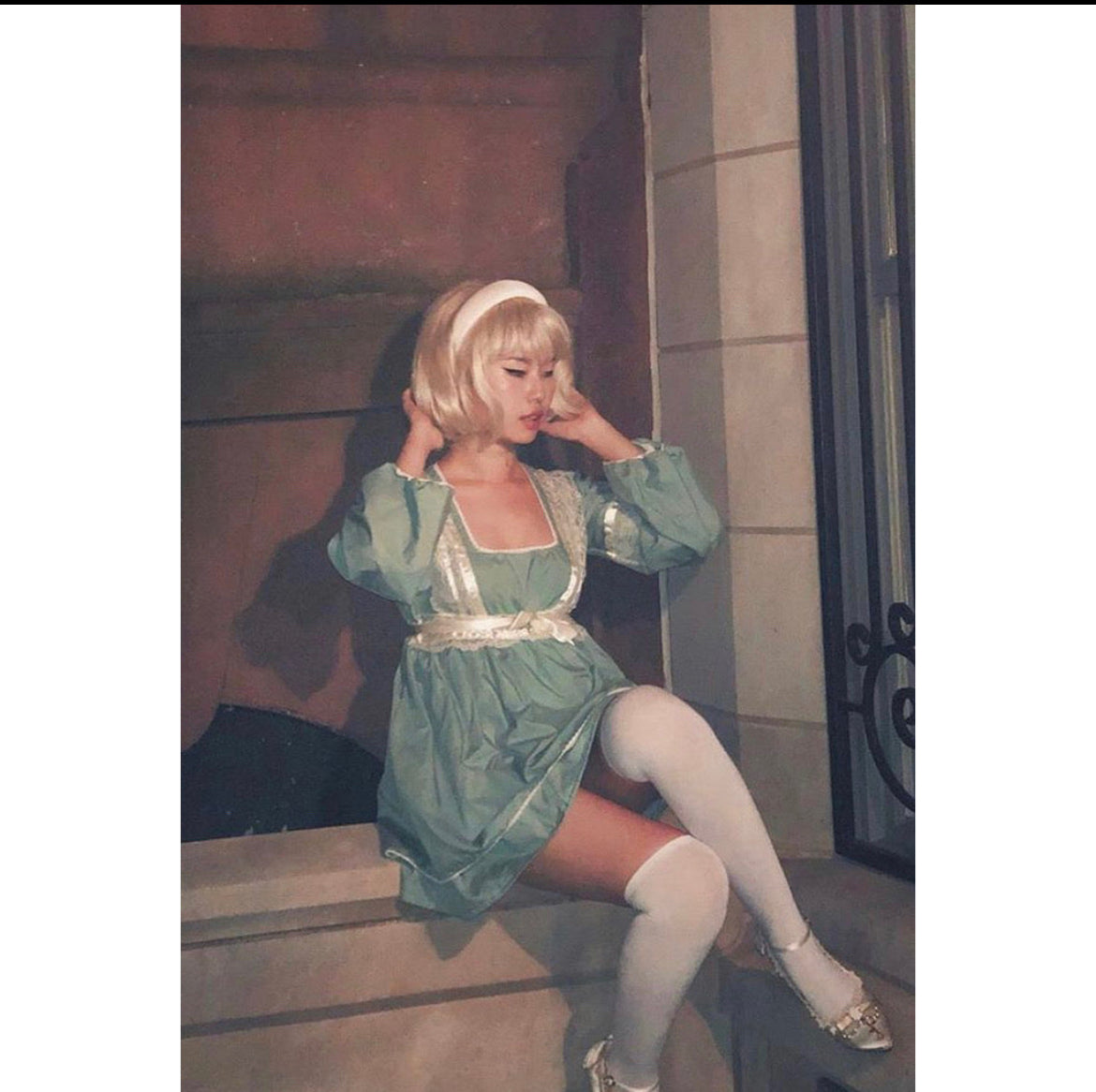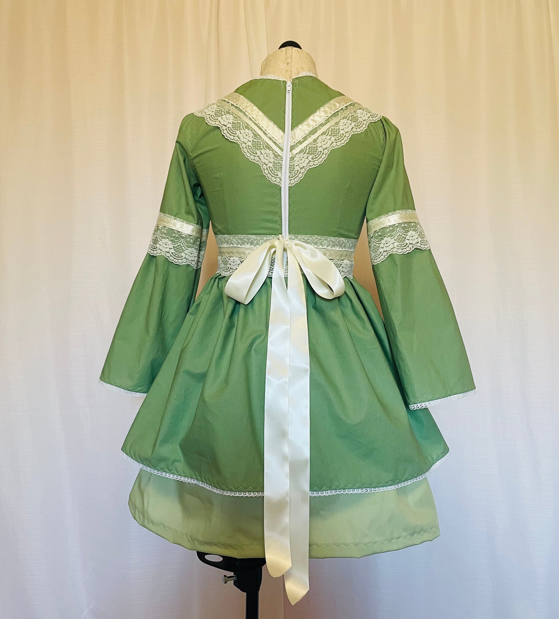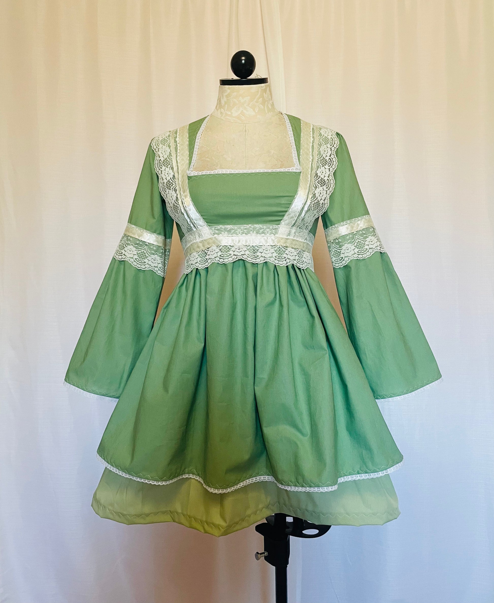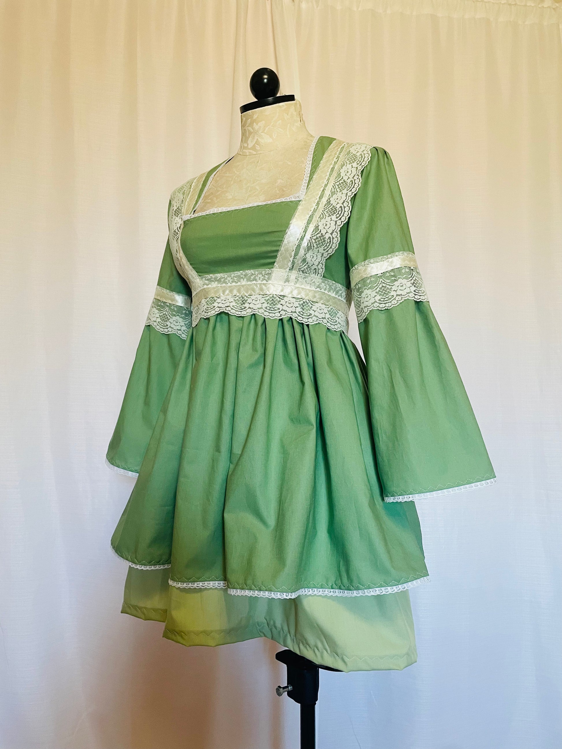 Vintage inspired, hand-dyed soft cotton vintage style babydoll dress with lace and satin trim detail