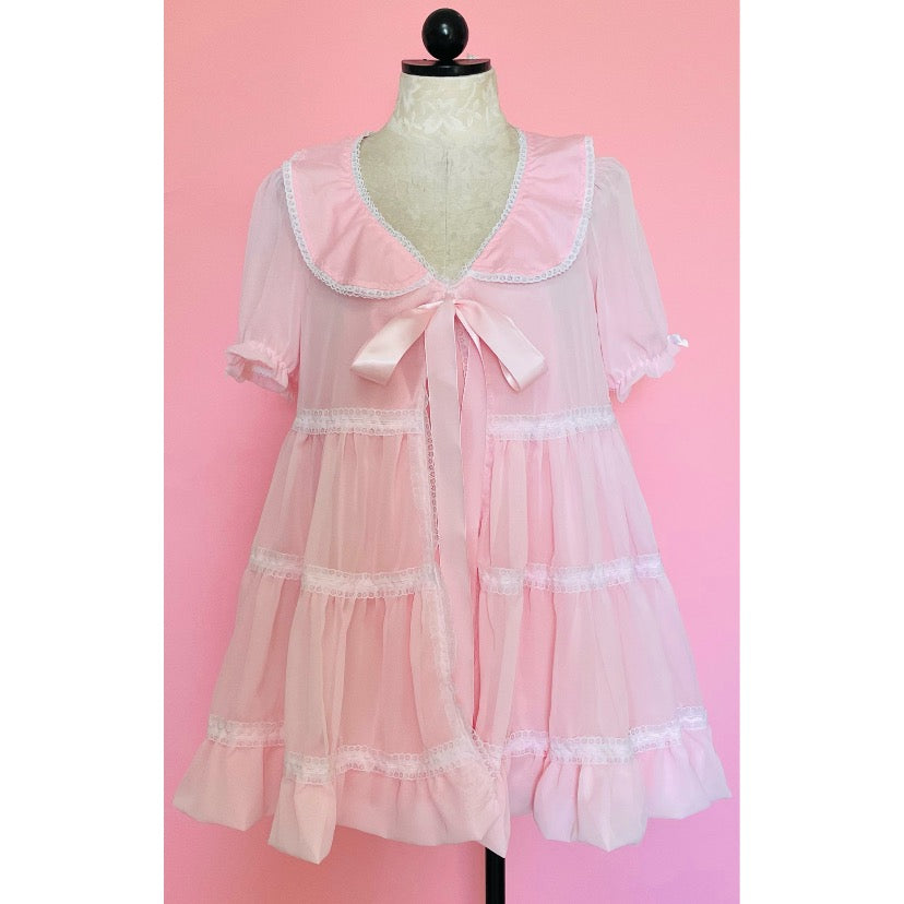 Vintage style chiffon layers over cotton Babydoll with satin bow tie front
