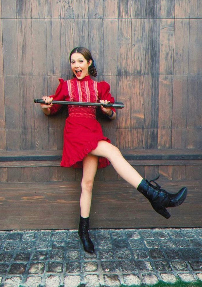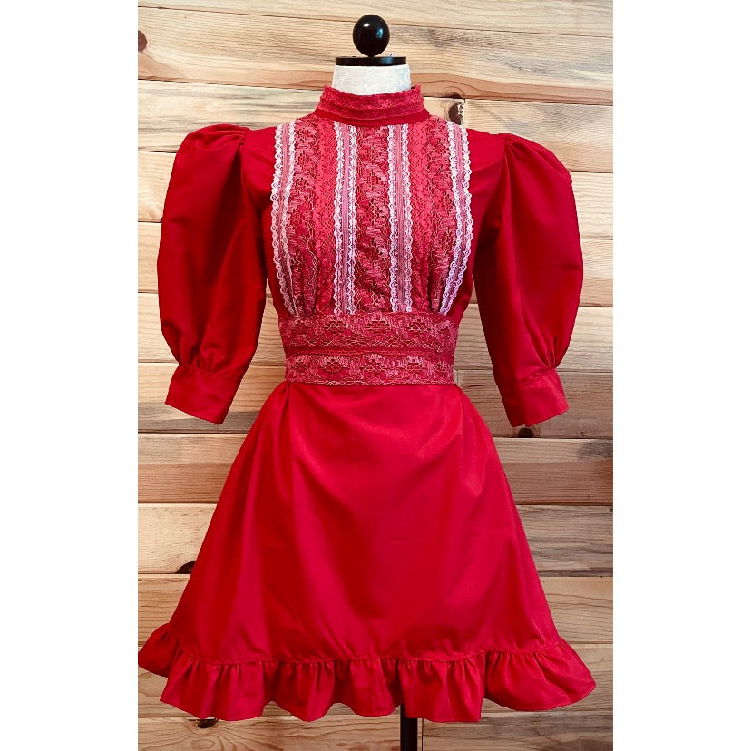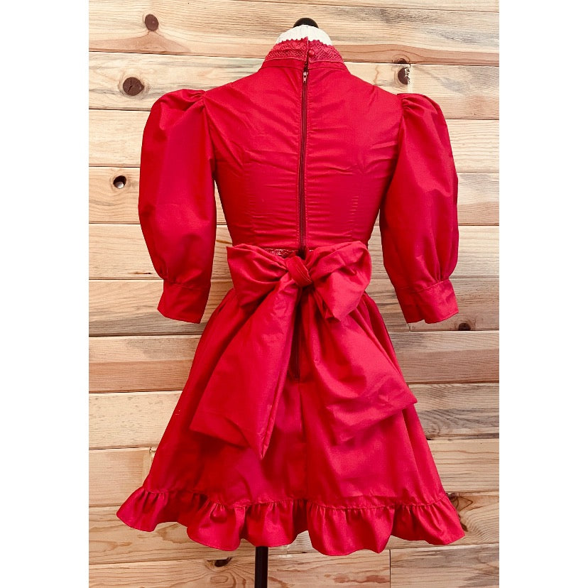 Vintage inspired cotton prairie dress with lace details and back bow